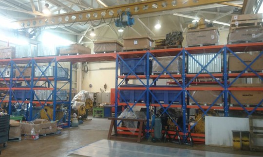 Для размещения грузов весом до 1000 кг выдвижных полках качестве подъемного механизма используются потолочная кран-балка, передвижной тельфер. При отсутствии подъемных механизмов или наличии «мертвых зон» используются стеллажи Slide со встроенной талью. Наличие в стеллаже тали в сочетании с выдвижными полками позволяет уменьшит рабочий проход, тем более, если для перевозки оснастки используются малогабаритные манёвренные тележки. Кроме удобства и безопасности хранения тяжелого и ценного груза Вы получаете существенную экономию рабочей площади.