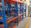 Цеховые стеллажи с выдвижными полками под фирменный стиль предприятия