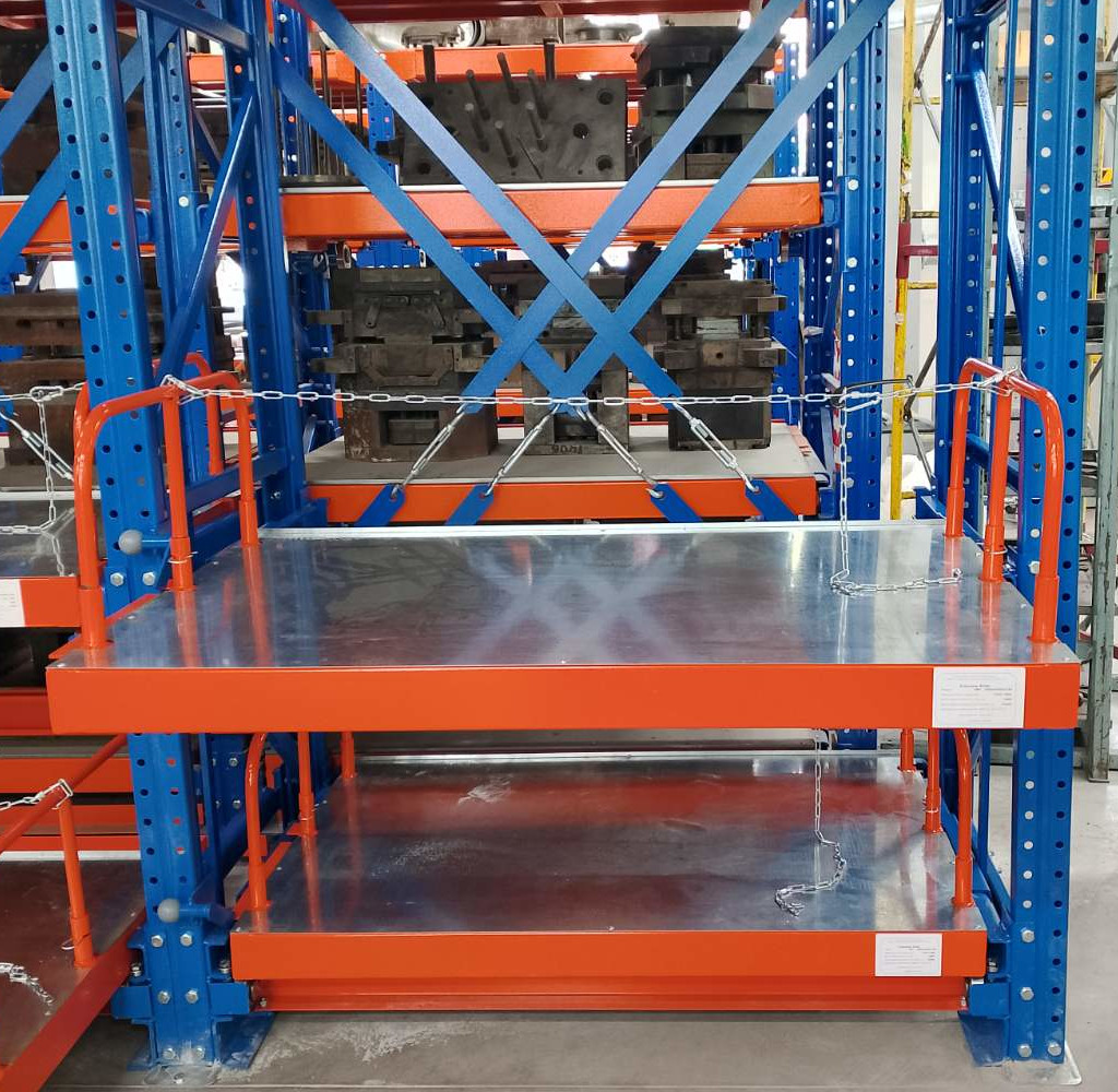 Стеллажи с выдвижными платформами для хранения литьевых форм